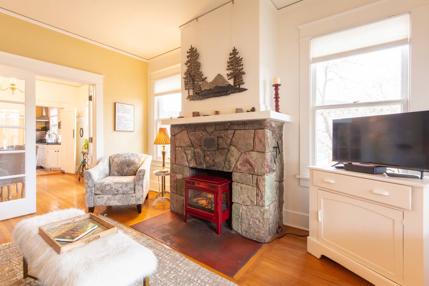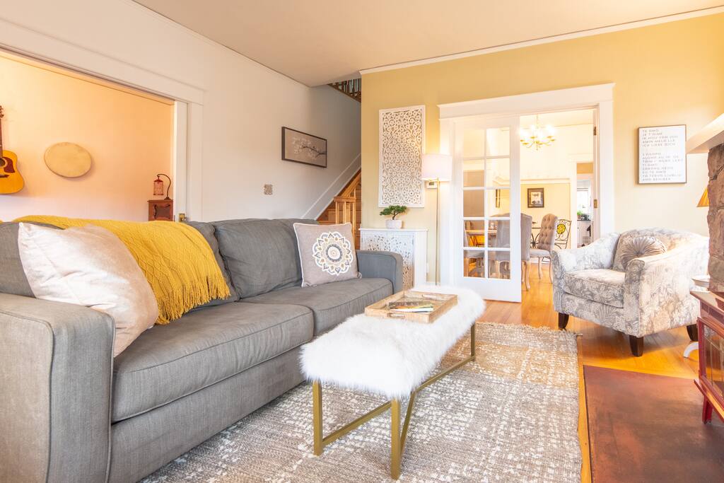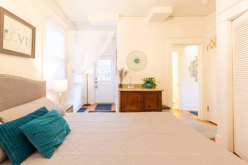 The entire 1st floor of the Inn House is all yours, with no other guests staying upstairs at the Inn! ✔ 1 King Bed & 3/4 Bath + Pak n Play ✔ Private, surrounded by nature ✔ 2 min walk to cafes, restaurants, galleries, mineral springs, Spa 6 mins; Trails: Incline/Barr 15 mins; Intemann 10 min ✔ 150 MBPS Internet ✔ Full kitchen, living room, salon/music room ✔ Grill, front & back Patio seating ✔ 2 private parking spots Message us if you'd like to book the whole 4 Bed/4 Bath Inn House instead.