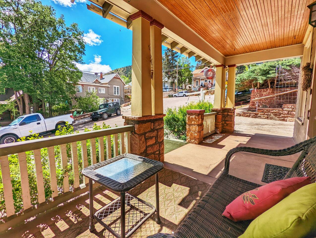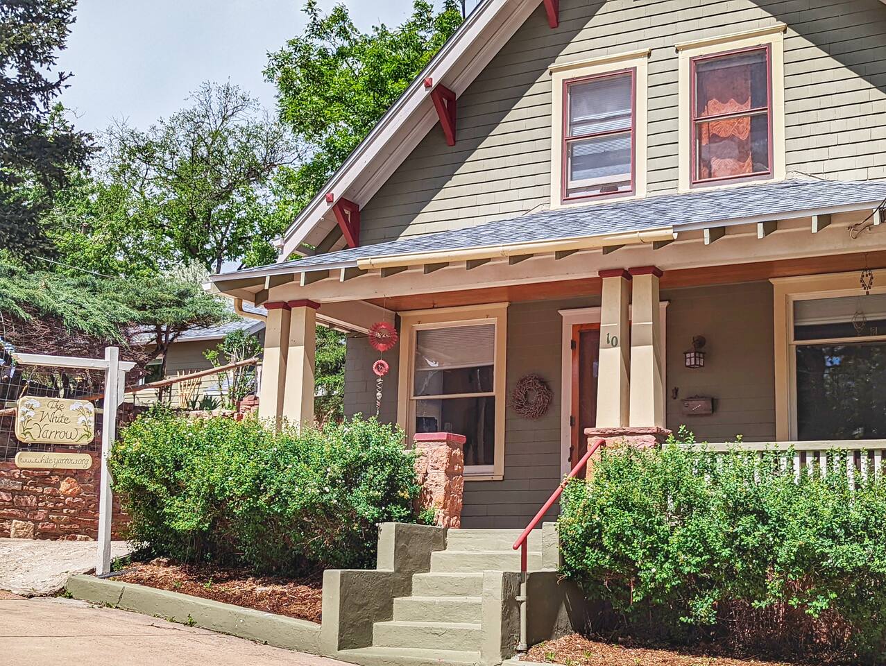 The White Yarrow Inn House is a 1919 Arts and Crafts era home that has in the past ranged in use from a boarding house for teachers to a private residence, to a traditional bed and breakfast. We're offering the whole house (all year) or just the first floor (off-season, mosty weekdays, but some weekends) as a vacation rental. It's a great spot for people who want privacy for themselves and accessbility to downtown Manitou Springs, with all its shops, restaurants, galleries, and arts and cultural events. In Manitou's Historic Downtown district, the Inn House is also walkable to several area trails, from the Intemann/Red Mountain, to the Barr Trail (to Pike's Peak), to the Manitou Incline. to Ute Pass, to Rainbow Falls.